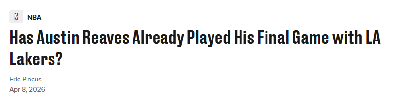 里夫斯受伤后,湖蜜都在关心他什么时候复出,然而美媒却发出 犀利的 诘问 ,里夫斯是否已经打完了他在湖人的最后一场比赛?